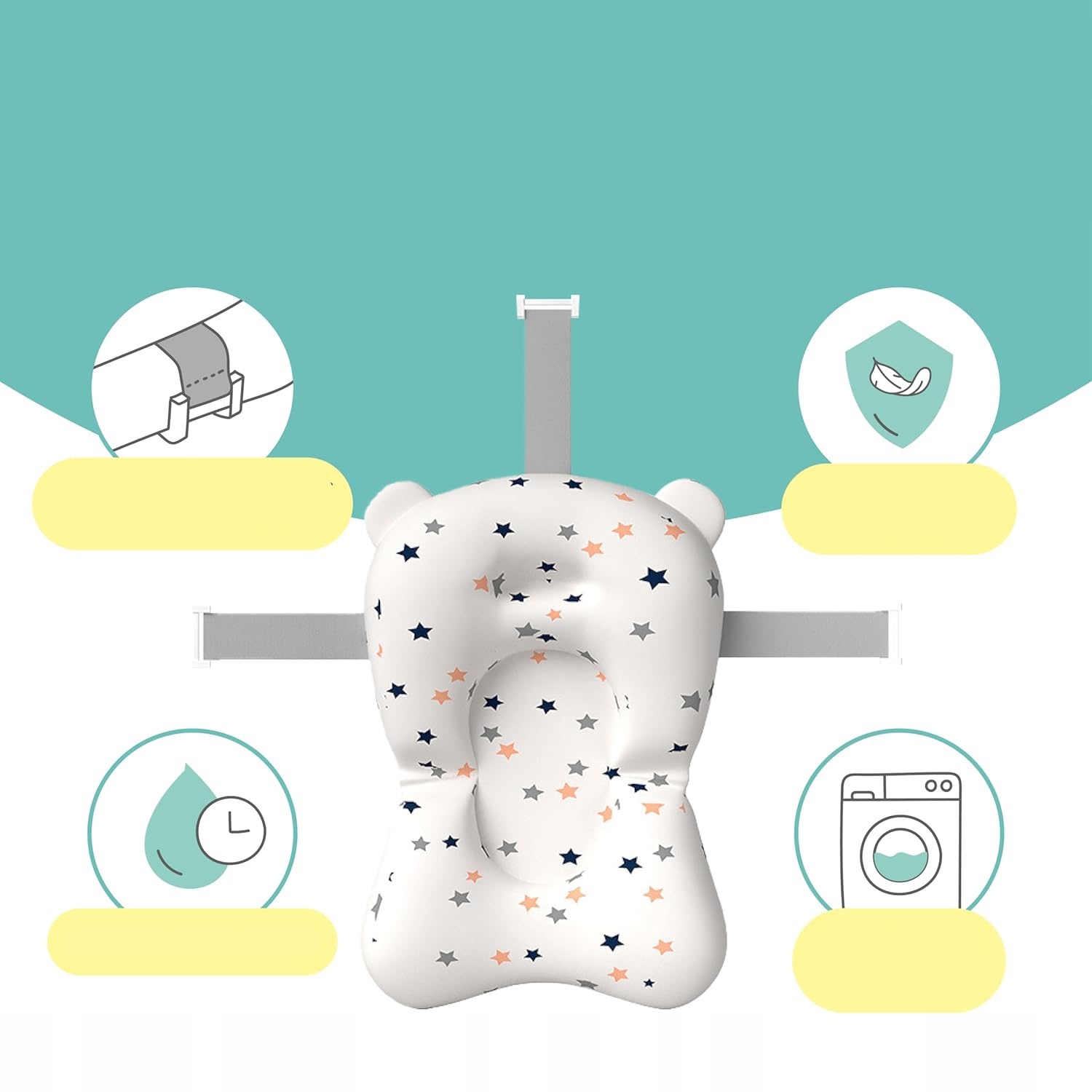 ✔️✔️✔️【Удобная】эргономичная, удобная для детей подушка (Материал: ПП и мягкая резина ТПЭ) надежно крепится к краю ванны. Ваш ребенок будет лежать стабильно и комфортно. Ручная стирка.