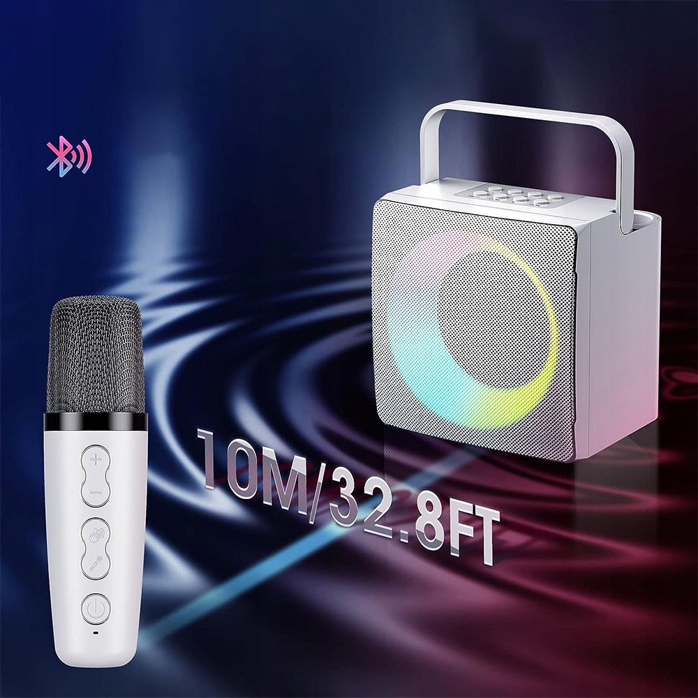 ✅【Разноцветные огни для вечеринок: 】Динамик для пения песен показывает яркие и красочные светодиодные фонари. Вы можете переключить световой эффект, чтобы создать атмосферу вечеринки. Нажмите и удерживайте кнопку, чтобы выключить свет. Идеальный подарок для семьи и друзей