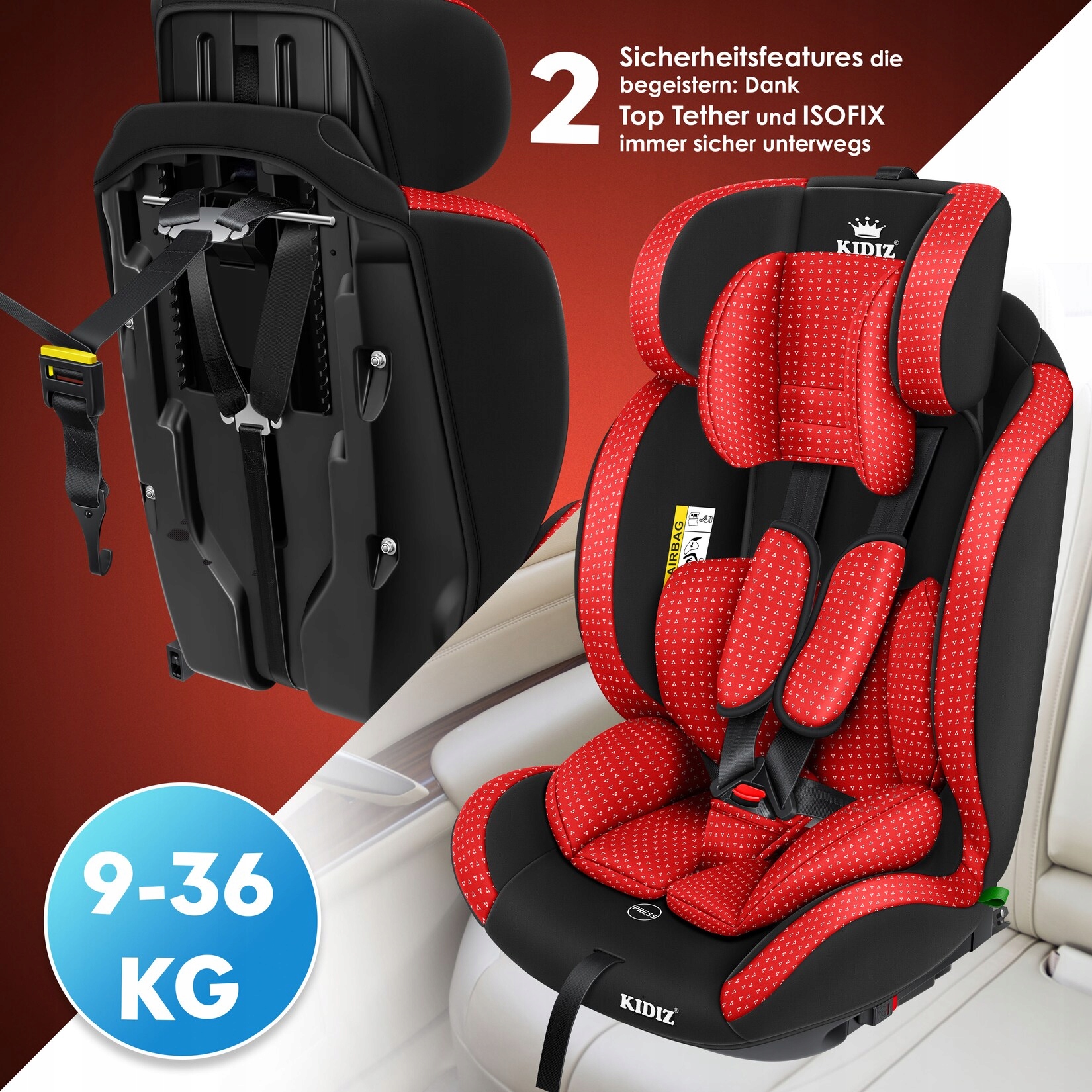 Дитяче крісло KIDIZ Triangle Premium 9кг - 36кг 1-12 років червоне