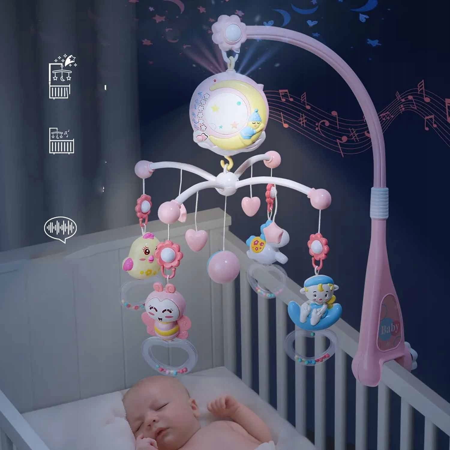✔️[Карусель, которую можно взять с собой и погремушку] - Музыкальная карусель имеет ремешок на липучке, ее можно носить отдельно или завязывать к подлокотнику кровати. Используйте в детских кроватках, манежах, переносках, колясках, люльках и т. д. 4 подвески можно снять и использовать как небольшие погремушки.