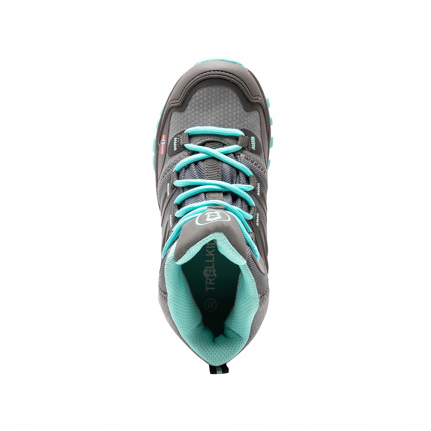 TrollKids Kids Rondane Hiker Mid антрацитовый/мятный непромокаемый детский трекинговый кроссовок, серый (252-609)