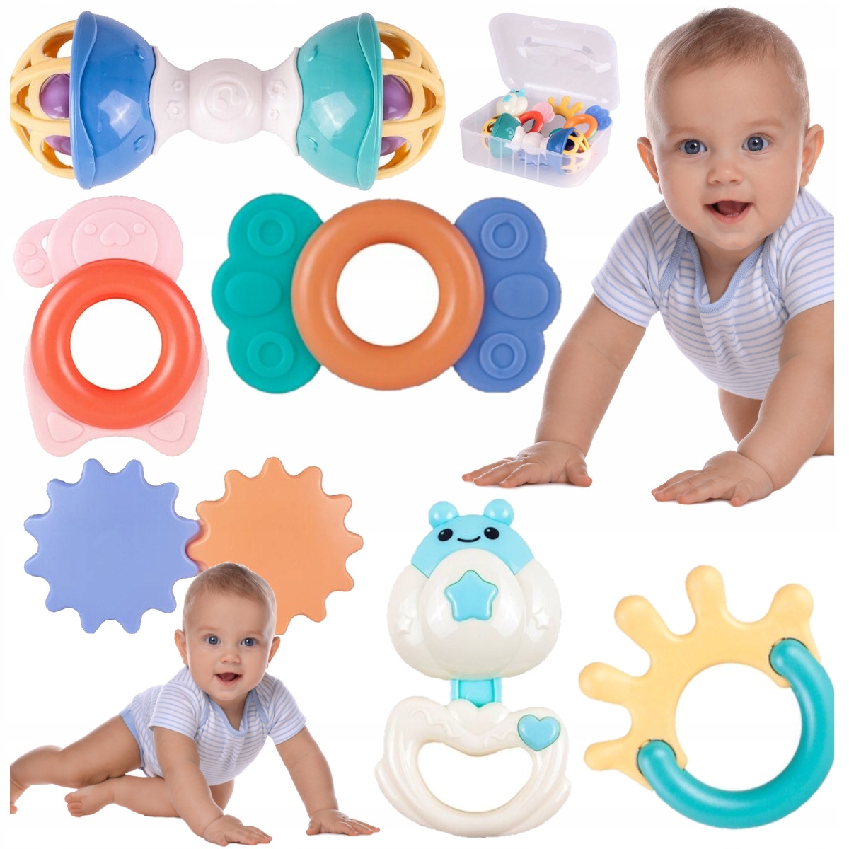 ДИТЯЧІ БРязкальця та прорізувачі для зубів у безпечній коробці на замку, 6 шт.