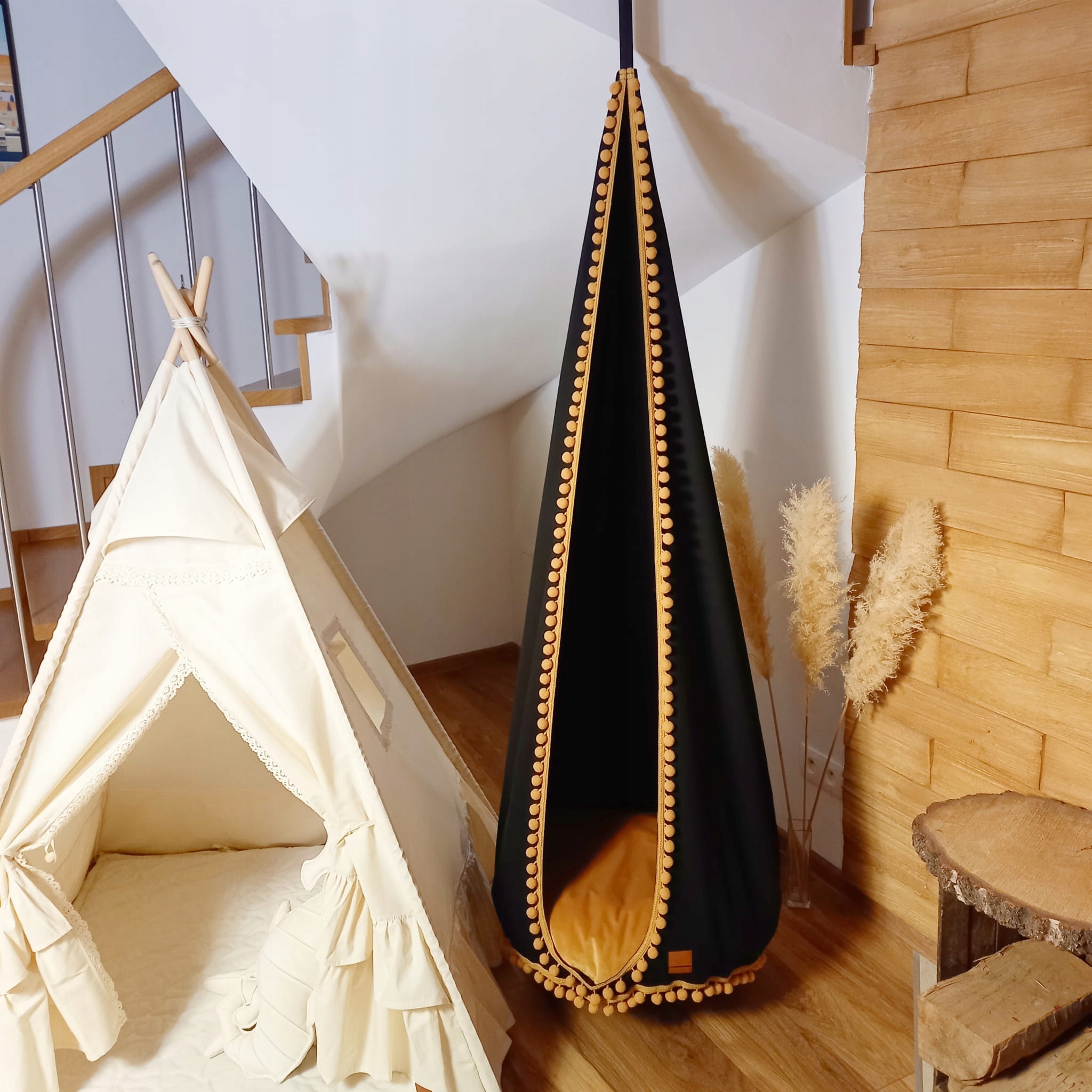 ДЕТСКИЕ КАЧЕЛИ КОКОН С ПОМПОНАМИ Чёрные