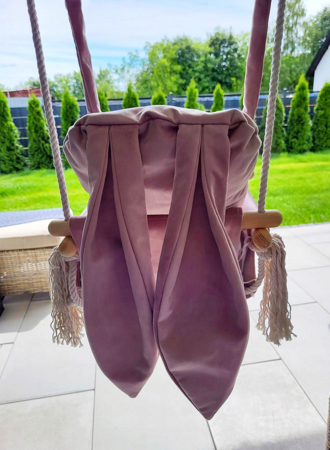 Качели изготовлены из нежного бархатно-плюшевого материала, очень мягкого и нежного на ощупь и очень прочного.