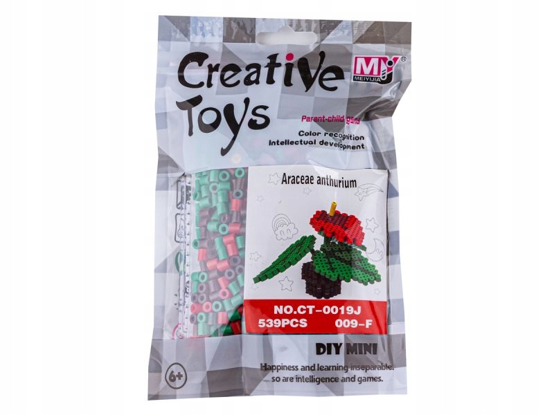 - Набор бусин «Цветок антуриума» – идеальное предложение для маленьких художников от 6 лет. Благодаря ему дети смогут построить красивое 3D-растение, развивая при этом свои навыки ручного труда и творческие способности. Игра требует концентрации, восприимчивости и терпения, что способствует развитию концентрации внимания и мелкой моторики. Помимо плоской подушечки для расстановки бусин в набор также входит бумага для глажки, пинцет, держатель-коннектор и подробная инструкция. Расставив бусины по схеме, просто прогладьте их и соедините белыми соединителями, чтобы создать неповторимое украшение. Продукт упакован в практичный пакет размером ок. 18 х 12 х 2 см. Все это состоит примерно из 539 элементов, что гарантирует долгие часы творческого веселья.