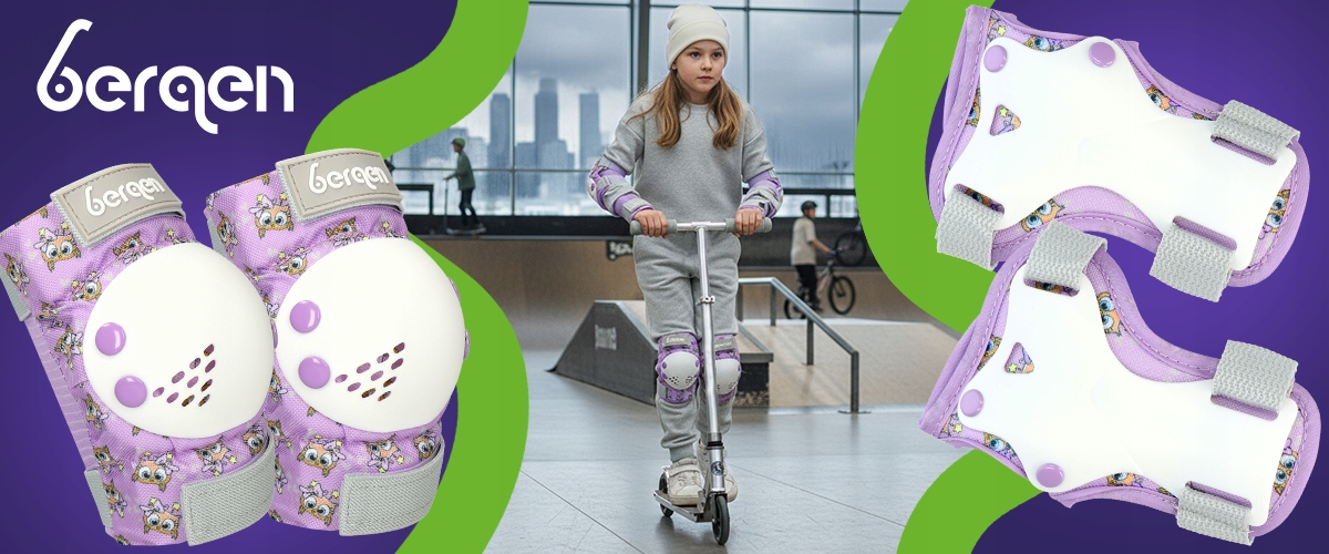 Защиты для роликовых коньков детские, комплект защитных устройств BERGEN XS, фиолетовые