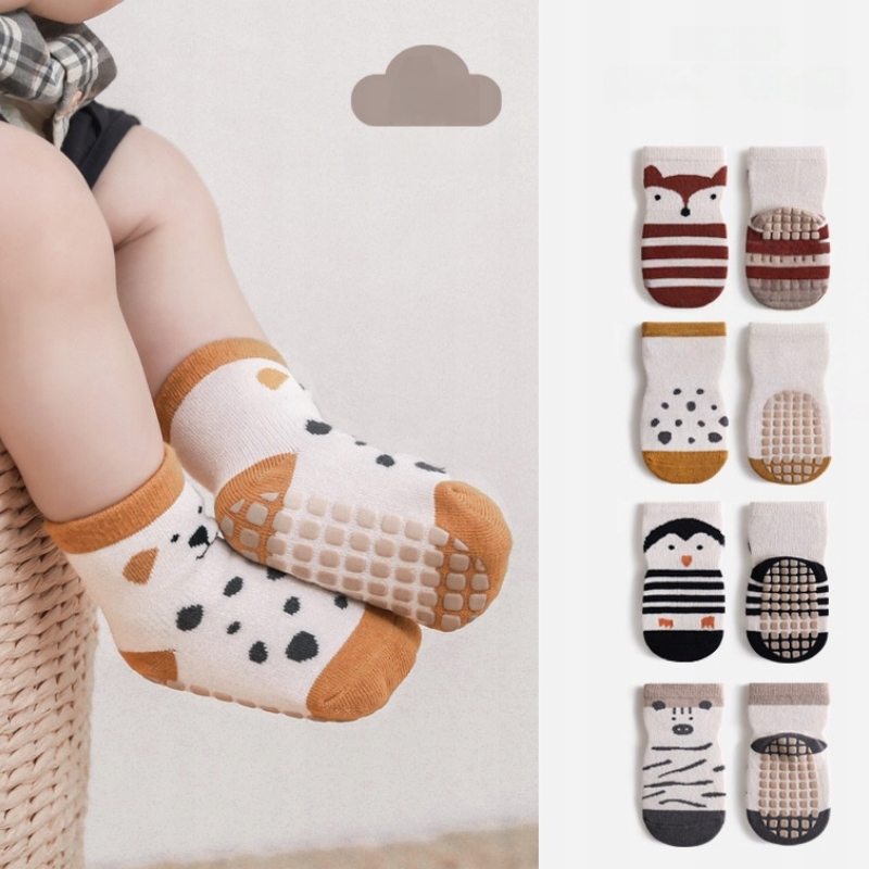 Детские носки 1-3 лет, нескользящие, с животным принтом, 5 шт.