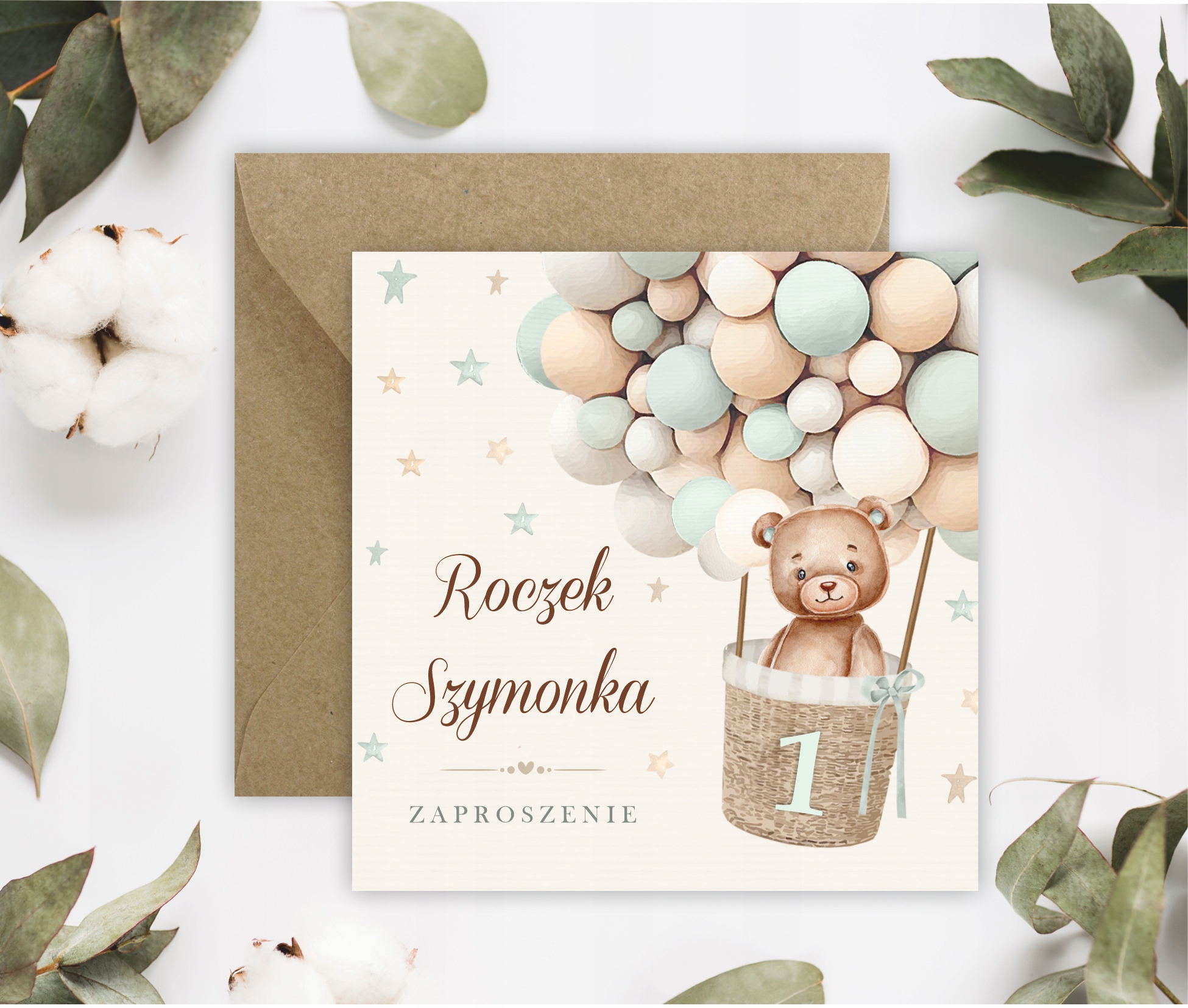 ПРИГЛАШЕНИЯ ДЛЯ ДЕТЕЙ + ИМЯ + КОНВЕРТ МЕДВЕДЯ БОХО