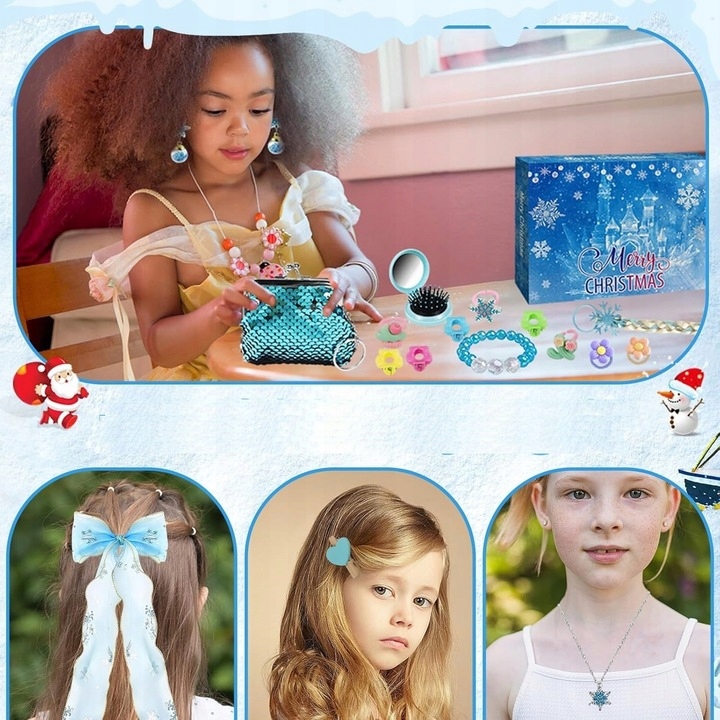 ❄️АДВЕНТ-КАЛЕНДАРЬ ДЛЯ ДЕТЕЙ С УКРАШЕНИЯМИ ДЛЯ ДЕВОЧЕК Синий ПОДАРОК❄️