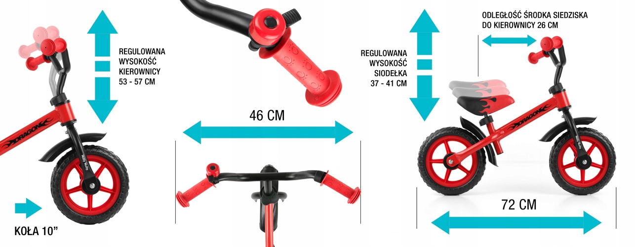 Велосипед DRAGON тренирует моторику, силу и мышцы ног b> поддержание равновесия и забота о координации движений. Благодаря этому ребенок правильно и быстро развивается.