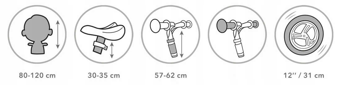 Чтобы ребенок мог свободно кататься на беговеле, в положении сидя вся стопа должна опираться на землю, а нога должна быть слегка согнута. Минимальное расстояние от седла до земли должно быть меньше длины ноги маленького велосипедиста.