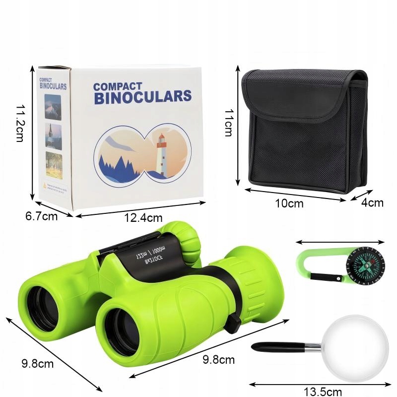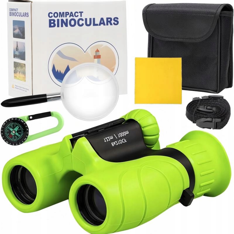 ДЕТСКИЙ БИНОКЛЬ С УВЕЛИЧИТЕЛЬНЫМ КОМПАСОМ, зеленый - Набор маленького исследователя - ПОДАРОК