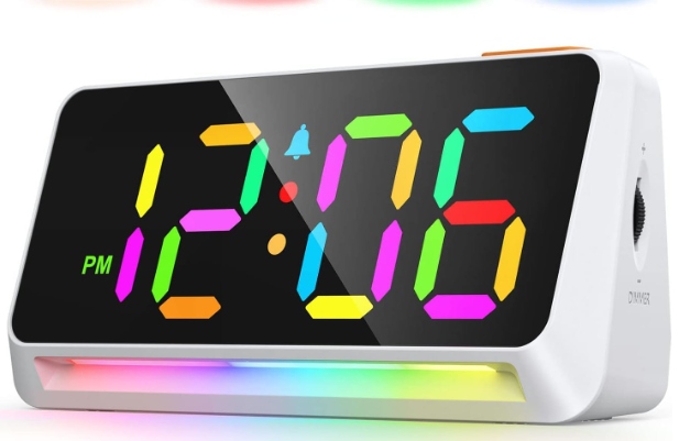 - 【Цветной дисплей и ночная подсветка RGB】Это красивый цифровой ночной будильник с классным радужным индикатором. Он яркий, меняющий цвет ночник — отличная идея для мальчиков и девочек. Интенсивность дисплея и ночного освещения можно регулировать в соответствии с вашими предпочтениями. Идеально подходит для прикроватной тумбочки или декора спальни. Если вы придирчивы к цветам, вам понравится, что этот будильник со подсветкой предлагает стандартные цвета и динамические цветовые вариации RGB, а также различные варианты отделки и оттенков дисплея на выбор.