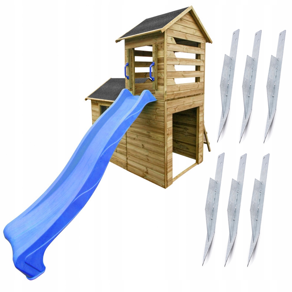 ✨ Деревянный садовый домик ROBERT 4iQ®, двухэтажный с длинной горкой + анкерами | Пропитанная под давлением древесина | Простота сборки | Дом можно покрасить | Пространство для детей и долгие часы отличного веселья✨