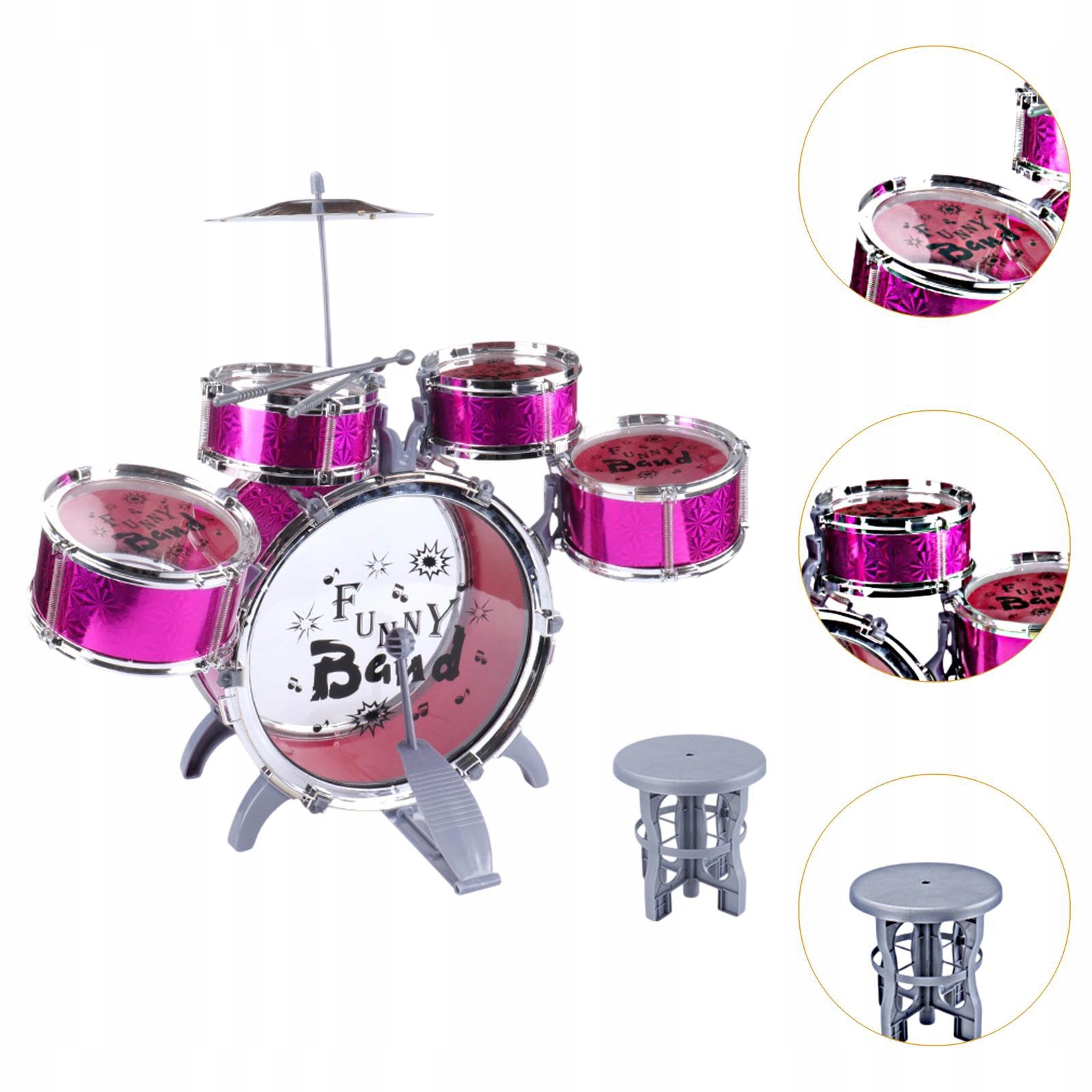 Полный набор джазового барабана для детей]: Этот барабан для детей был специально разработан, чтобы предоставить молодым людям полный опыт джазовых барабанов. Набор включает в себя бас -барабан, тарелки, палки и табуретки, что обеспечивает комфорт и простоту игры.