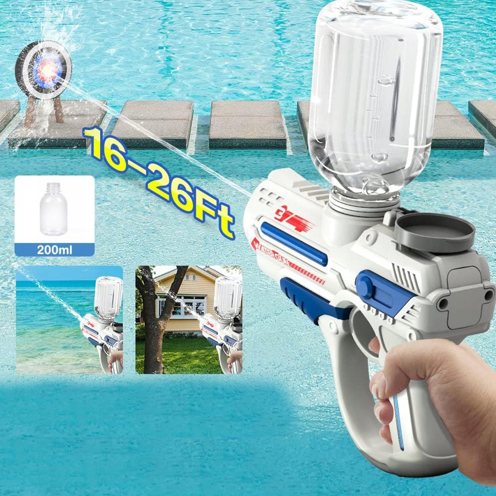 💦Большая дальность действия и большая емкость: Автоматический водяной пистолет имеет дальность действия до16–26 футов с каждым нажать триггер. Универсальное отверстие для бутылки - 25 мм, мощный распылитель воды может свободно распылять до 300-650 мл воды (в комплект входит только бутылка емкостью 200 мл; бутылку большей емкости можно отрегулировать самостоятельно).