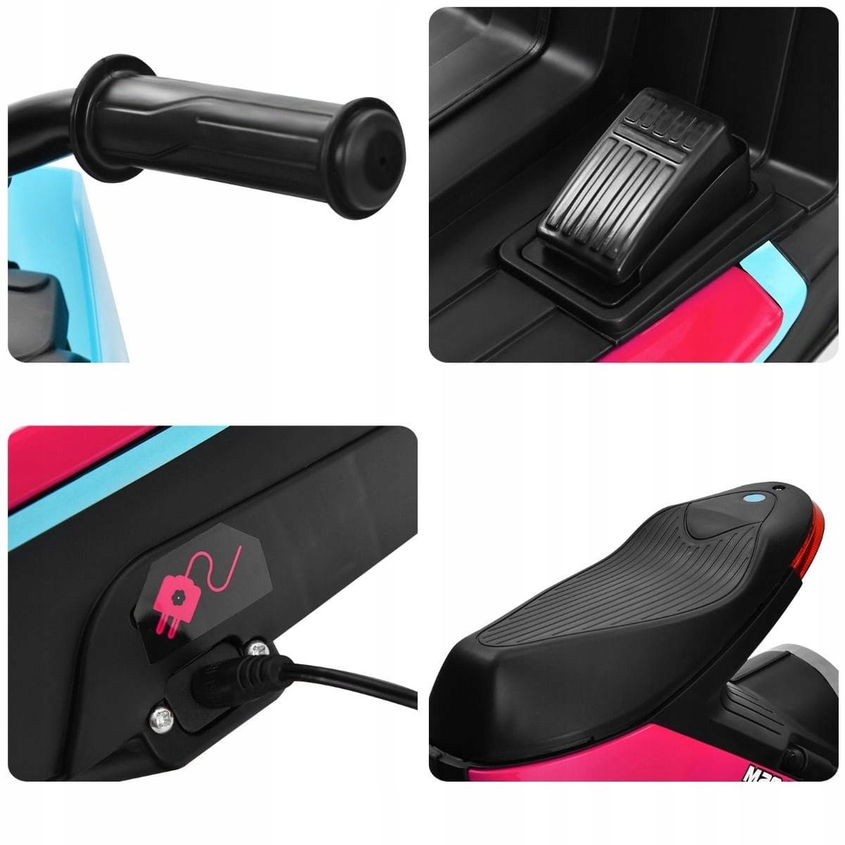 Безопасность: система свободного запуска, разработанная специально для обеспечения безопасности ребенка с первого момента игры. При нажатии на педаль акселератора самокат плавно разгоняется до максимальной скорости. Профилированное седло с приподнятой спинкой не только удобно, но и защищает маленького водителя от скатывания назад.