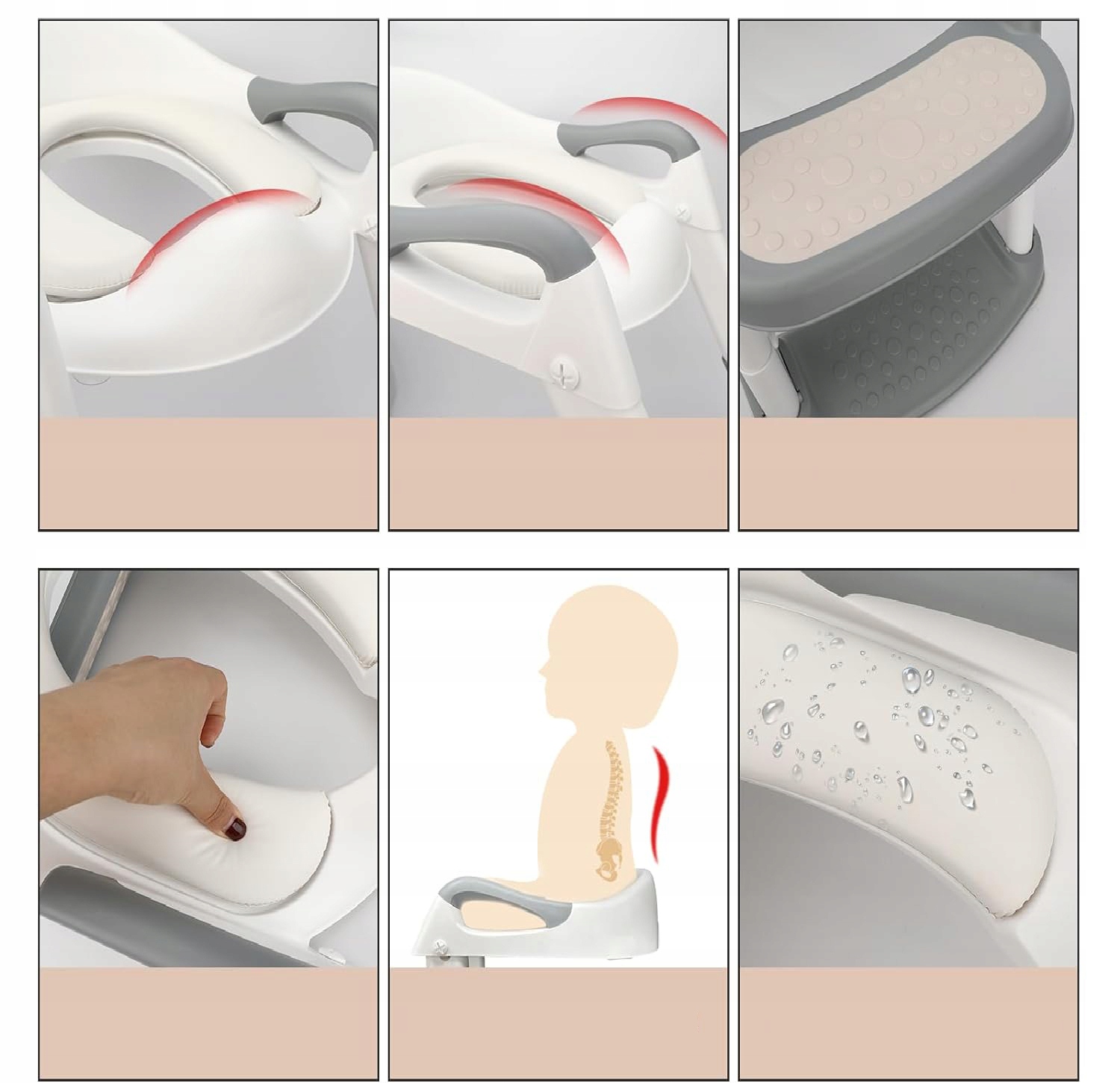 Наше сиденье для приучения к горшку, изготовленное из экологически чистого полипропиленового материала, с удобными и водонепроницаемыми мягкими полиуретановыми подушками, обеспечивает долговечность и комфорт для нашего маленького ребенка. Кроме того, прочная нескользящая подставка для ног для детей, ручки и защита спины обеспечивают безопасность и устойчивость.