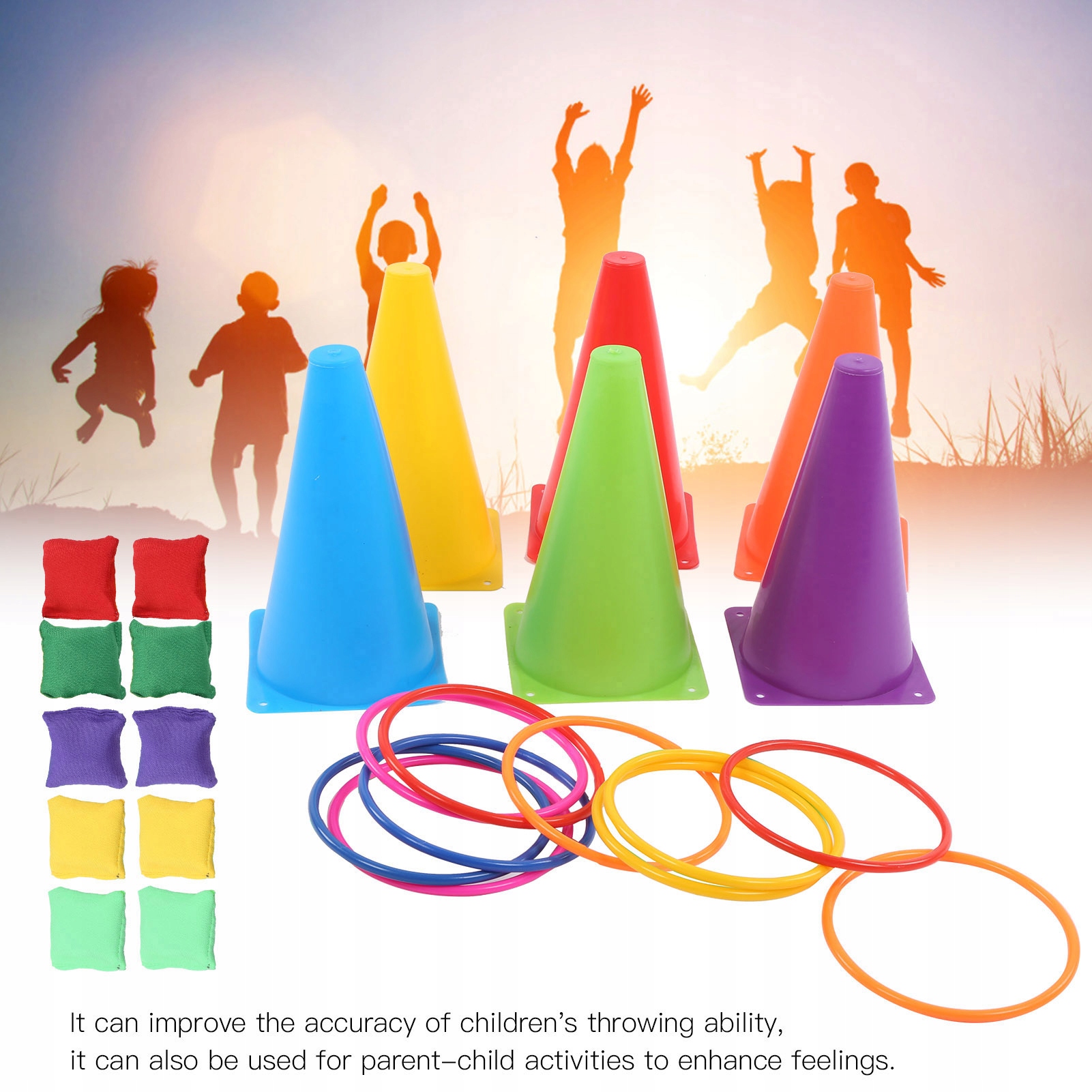 1. Высококачественный полиэтиленовый материал, износостойкий и прочный. Стресс может быть естественной деформацией, умеренной твердостью, нелегко повредить руку. 2. Светлый цвет можно использовать независимо от того, солнечный он или дождливый, легко адаптируемый, неограниченный в зависимости от местоположения. 3. Может улучшить точность метания детей, а также может использоваться для занятий между родителями и детьми для усиления чувств. 4. Вес безопасных мягких конусов, разноцветных обручей и мешков с песком относительно легкий и небольшой, безопасный для детей. Многофункциональный набор игрушек 5, 3 в 1, отлично подходит для вечеринок, занятий в помещении и на свежем воздухе.