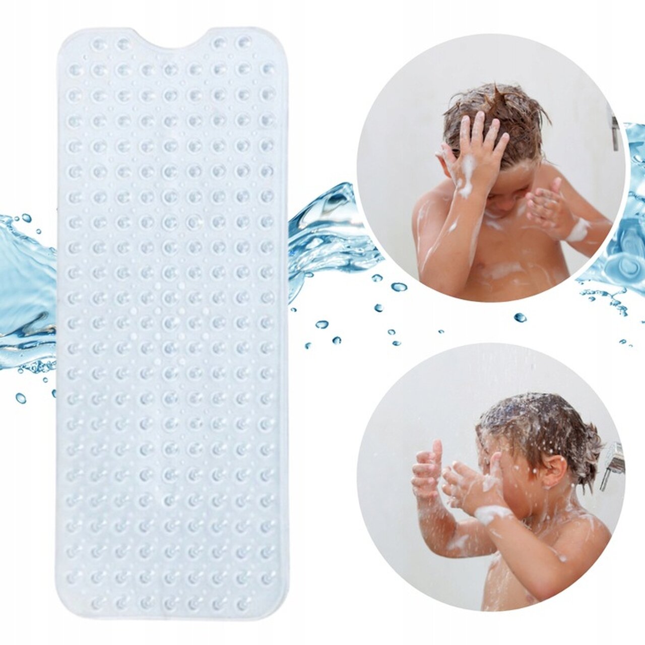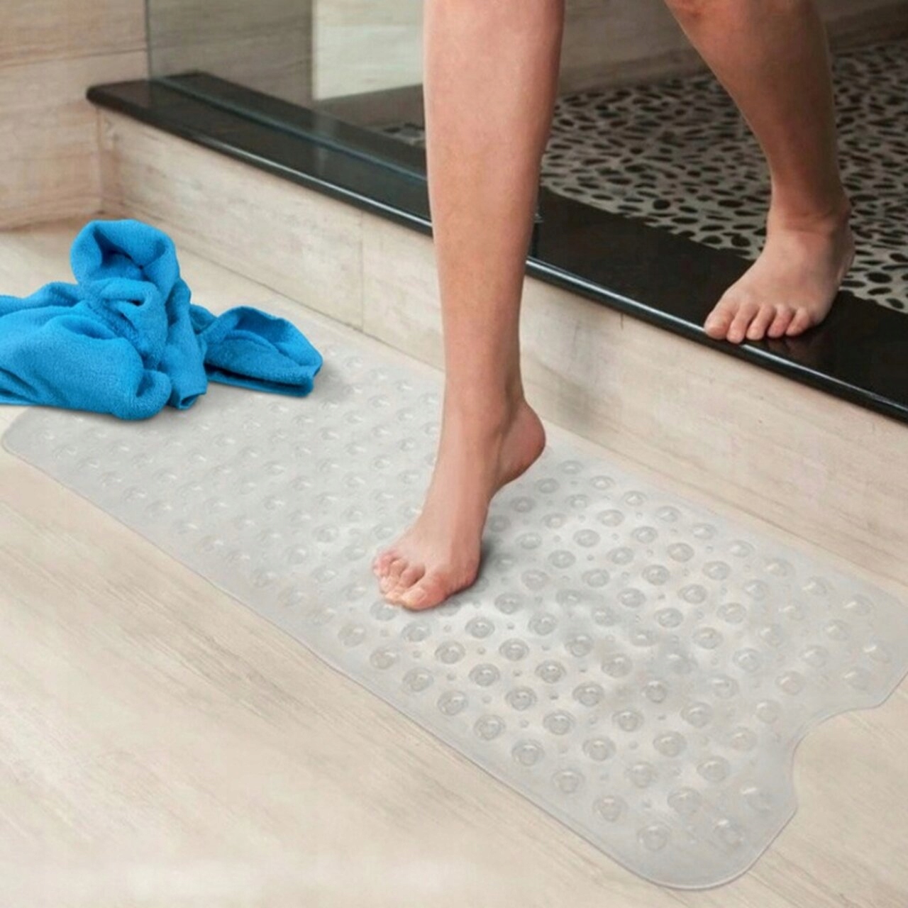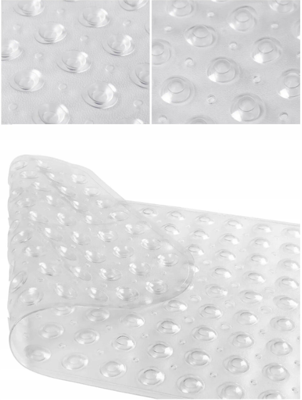 ✔️ Нейтральный, прозрачный цвет коврика позволяет ему вписаться в интерьер любой ванной комнаты.