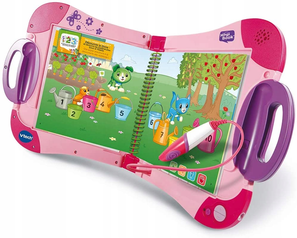 С розовым стартовым пакетом MagiBook ваш ребенок откроет для себя новые увлекательные и интерактивные игровые возможности! Он играет с цифрами, буквами, цветами и многим другим... Играя, он изучает такие ключевые навыки, как чтение, письмо, числа, вычисления, естествознание, и открывает для себя мир вокруг себя. В этой интерактивной вселенной успокаивающий и нежный голос, милые персонажи, забавные звуки и красивые песни сопровождают ее в ее открытиях!