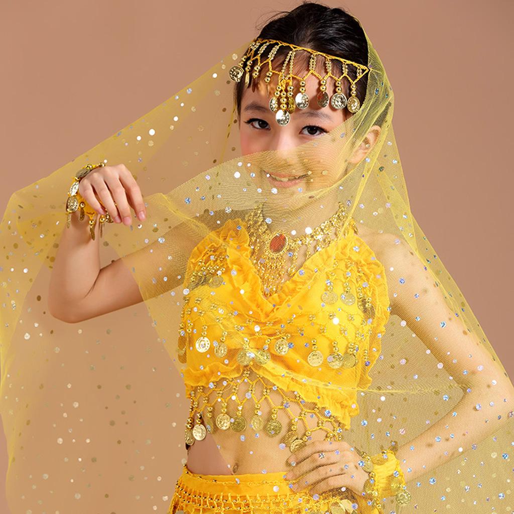 Детский костюм для танца живота с кисточками, топ с бретелькой на шее, юбка, комплект с шарфом L, желтый