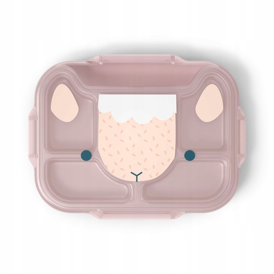 Коробка для завтрака Wonder Pink Sheep Monbento имеет крышку с зажимами, которую может легко открыть любой ребенок.