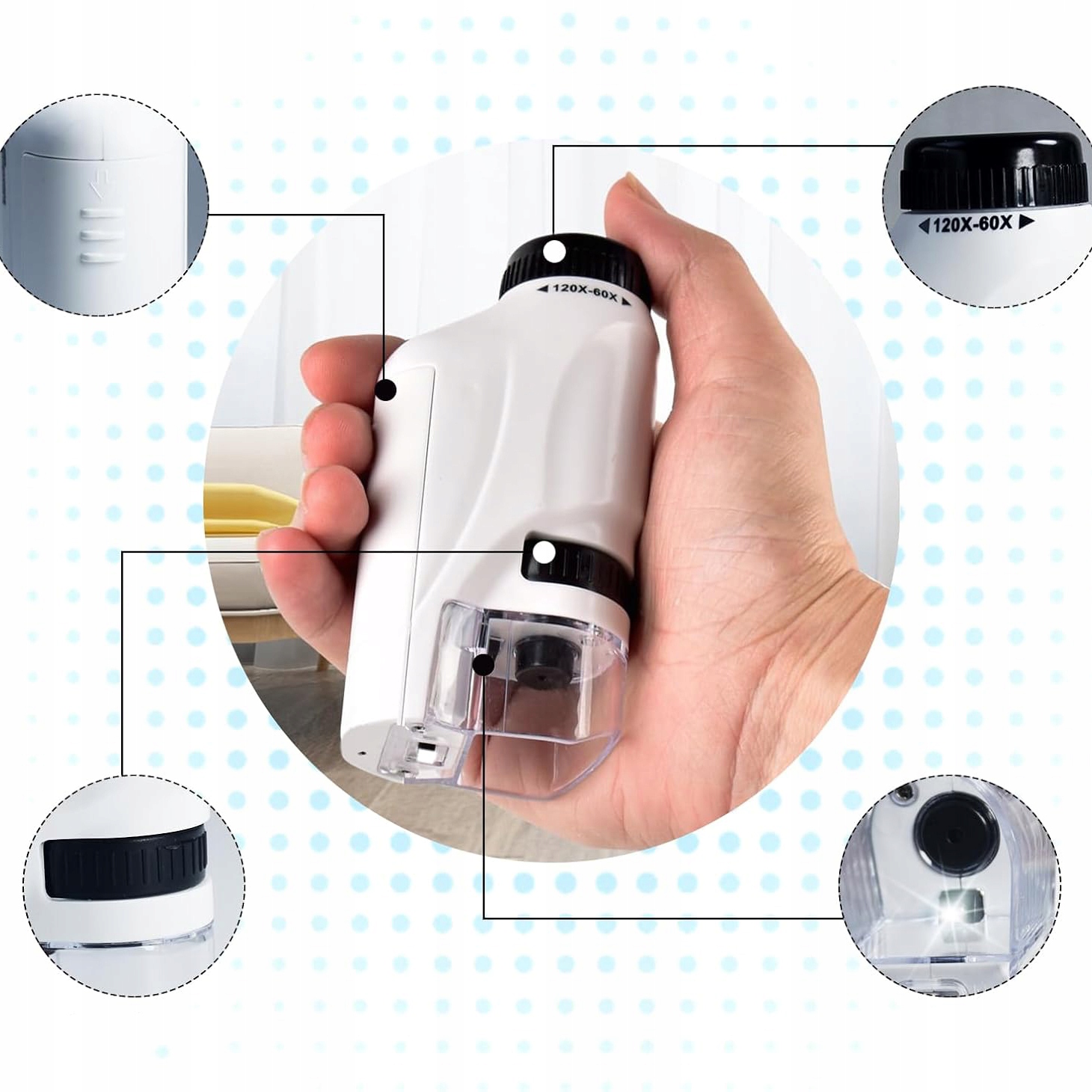 Детский микроскоп, 60x-120x, карманный мини-микроскоп для школы, белый