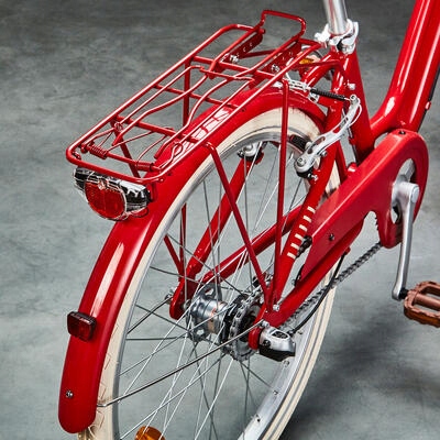 Этот велосипед оснащен 3-скоростной интегрированной втулкой Shimano Nexus. Это облегчает переключение передач и предотвращает падение цепи и пропуск передач. Кроме того, этот хаб более долговечен, менее подвержен воздействию дождя, пыли и ударов: идеально подходит для ежедневных поездок по городу. Ее легче обслуживать, а поскольку цепь всегда параллельна, она изнашивается медленнее!