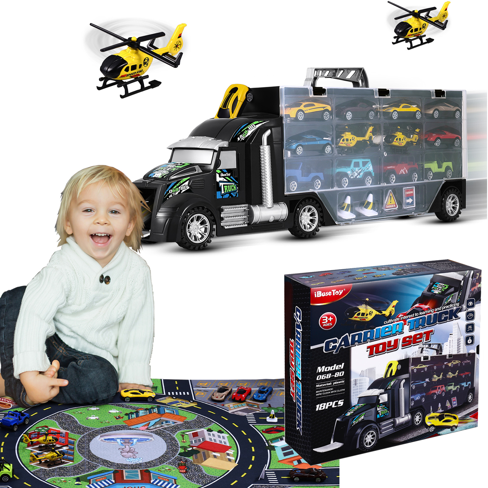 С этим набором вы можете быть уверены, что ваш ребенок не потеряет ни одного автомобиля из своей коллекции машин. Эвакуатор оборудован в общей сложности 12 местами, где можно хранить автомобили и самолет, а благодаря удобной ручке переноска всего комплекта не составит труда.