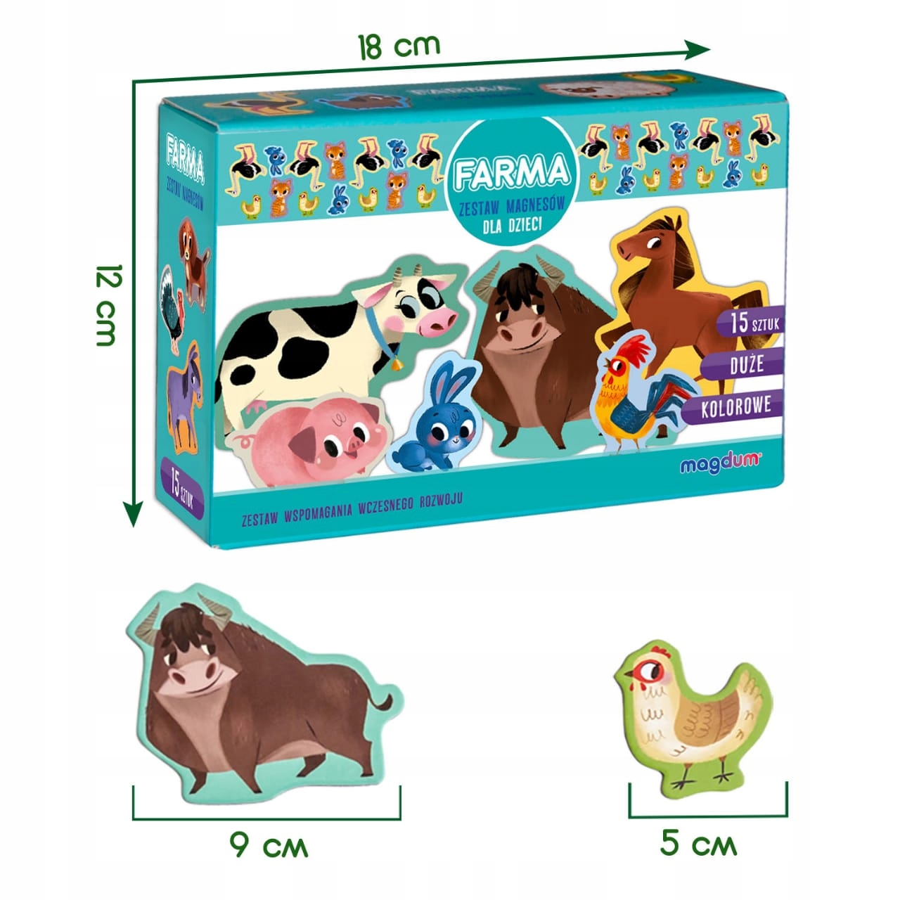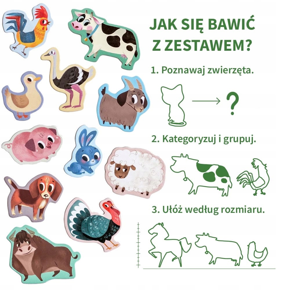 Большой набор магнитов посвящён самым маленьким детям, которые любят различные головоломки. На магнитах изображены разноцветные сельскохозяйственные животные.