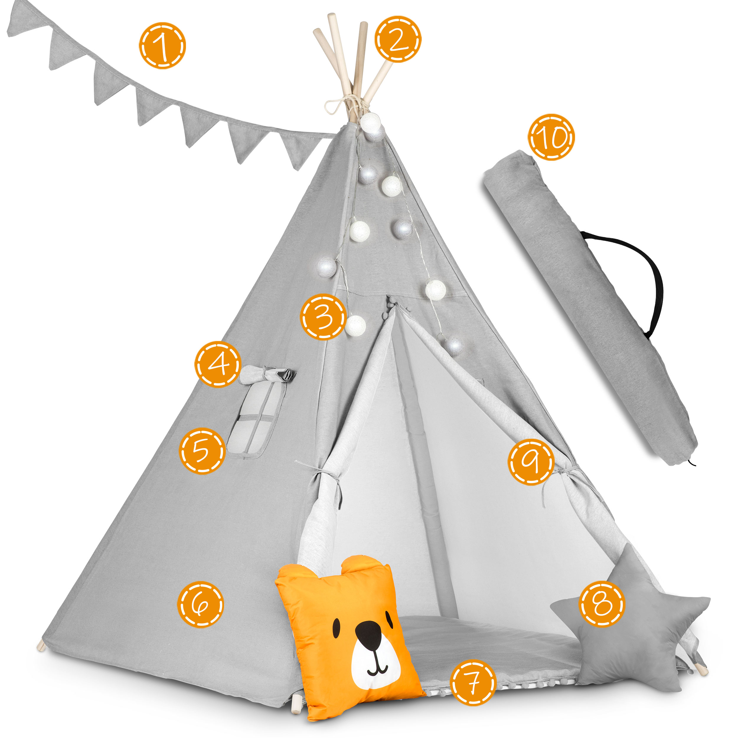 Высокая плотность стенки 175 г/м2 гарантирует, что типи будет чрезвычайно мягким, прочным и выдержит самые величайшие детские приключения.