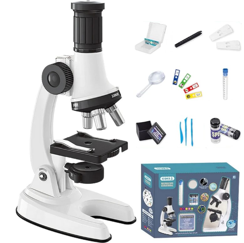 Детский научный школьный микроскоп 1200х В подарок НАБОР ПРЕПАРАТОВ 24 шт.