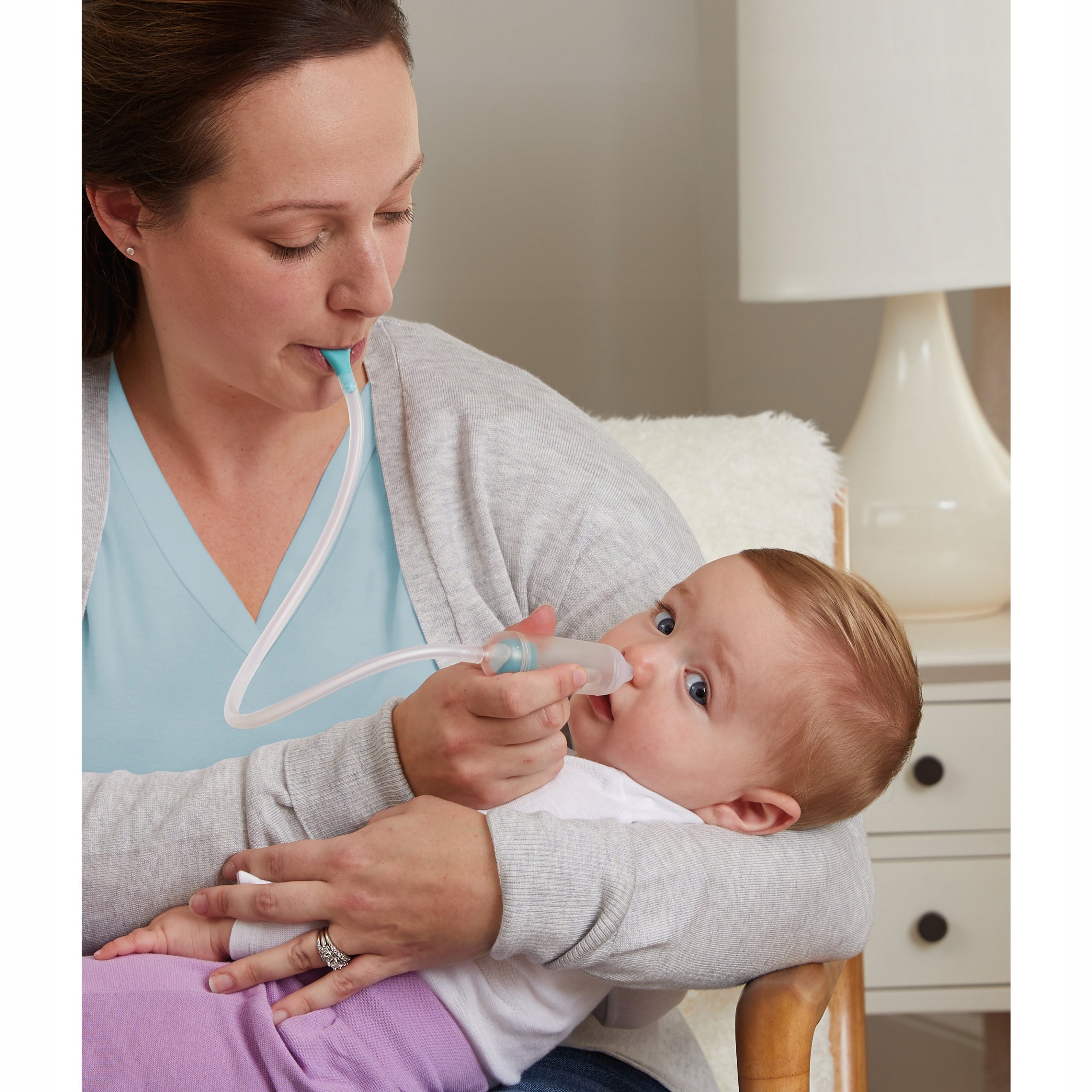 Медицинское устройство*, которое используется для отсасывания выделений из носовых ходов ребенка с использованием всасывающей силы, создаваемой человеком, работающим с устройством. Устройство состоит из мундштука, трубки и резервуара для секрета.