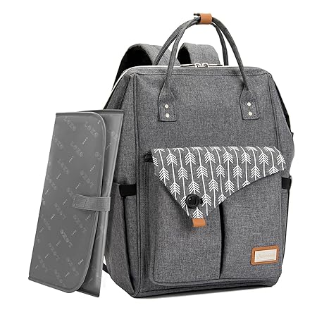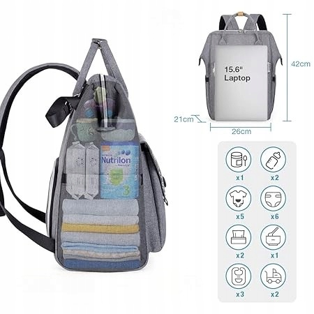 ⭐ LEKEBABY – Пеленальный рюкзак с подкладкой 19 карманов 23 л Серая дорожная сумка для родителей и малышей ⭐