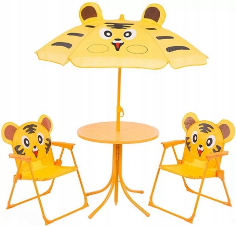 - Благодаря этому набору мебели вы создадите практическое и функциональное пространство для детей, которое состоит из: таблица, зонтик, два стула.