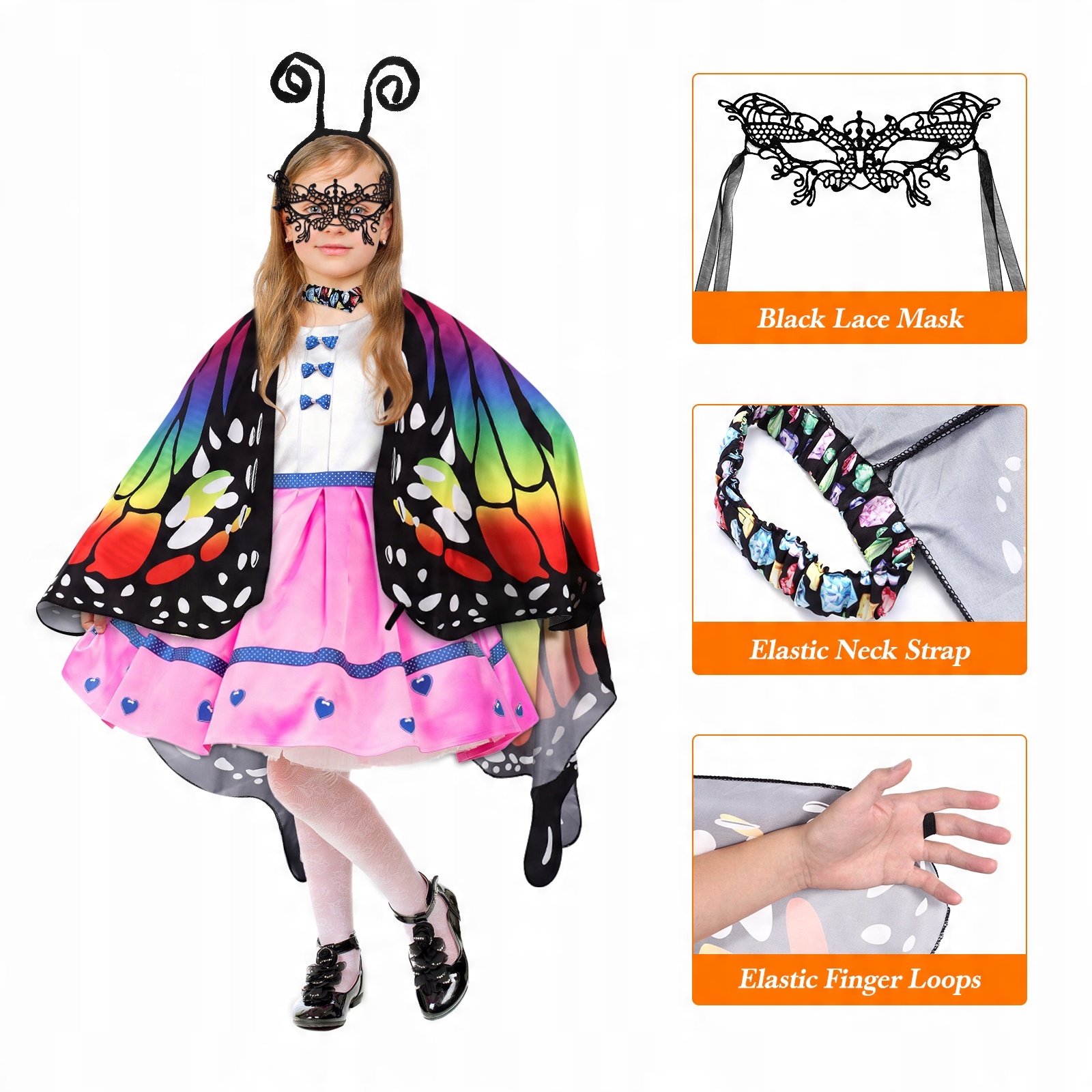 1 КОМПЛЕКТ ДЕТСКАЯ НАКИДКА С КРЫЛЬЯМИ БАБОЧКИ СЦЕНА ПОЛНАЯ МАСКА ДЛЯ КОСПЛЕЯ ПОЯС ДЛЯ ВОЛОС КРУЖЕВНАЯ МАСКА ВЕЧЕРИНОЧНЫЙ КОСТЮМ