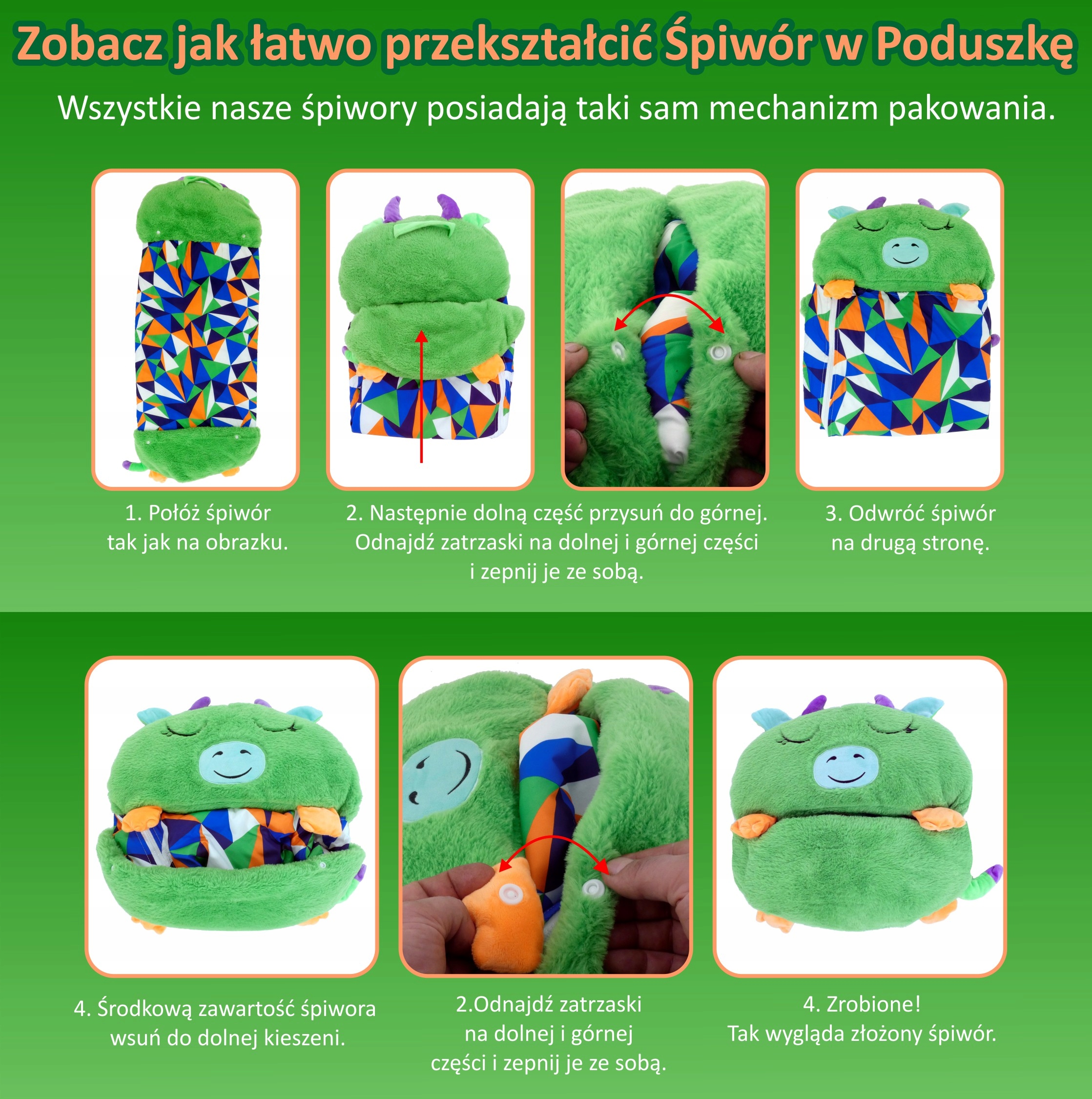 Ваш ребенок будет в восторге от этого спального мешка. Для повседневного использования ее можно сложить и использовать как подушку с забавной милой мордашкой. А при необходимости его можно развернуть и у вас есть удобный и приятный на ощупь спальник.