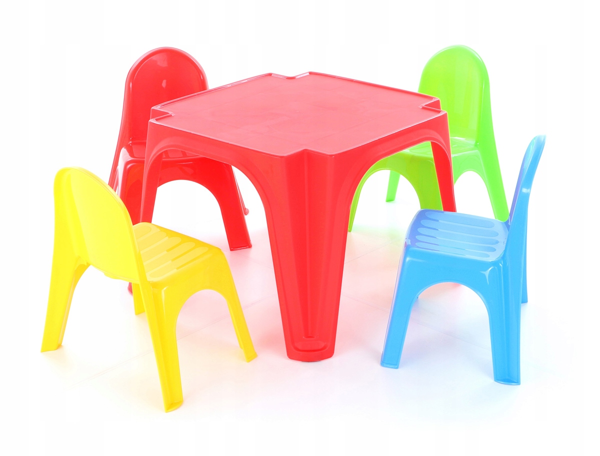 Замечательный комплект из стола и стульчиков для детей, который наверняка понравится каждому ребенку! Этот пластиковый стол и 4 ярких стула не только очень эстетичны, но еще очень прочны и удобны.