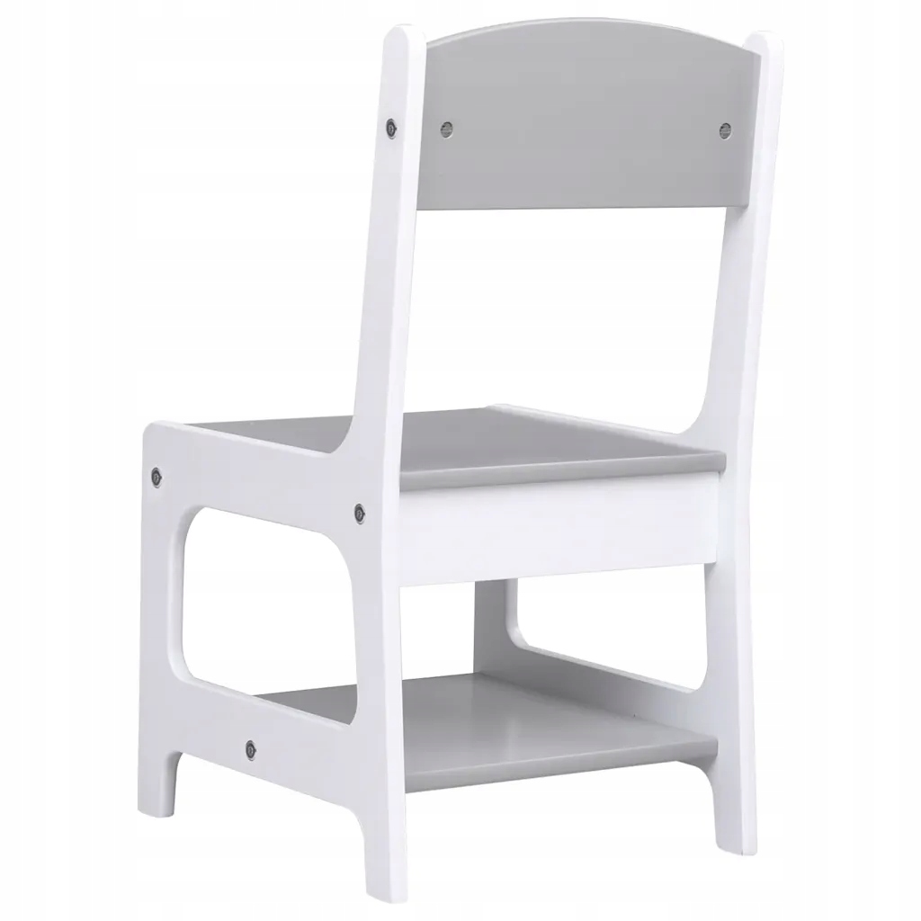 Стол имеет двустороннюю съемную столешницу, покрытую с одной стороны белой доской, а с другой - классной доской. Он идеально подходит как для рисования, так и для письма. Кроме того, стол оснащен практичным отделением для хранения вещей, которое помогает поддерживать порядок в вещах и предотвращает проливание напитков и падение игрушек.