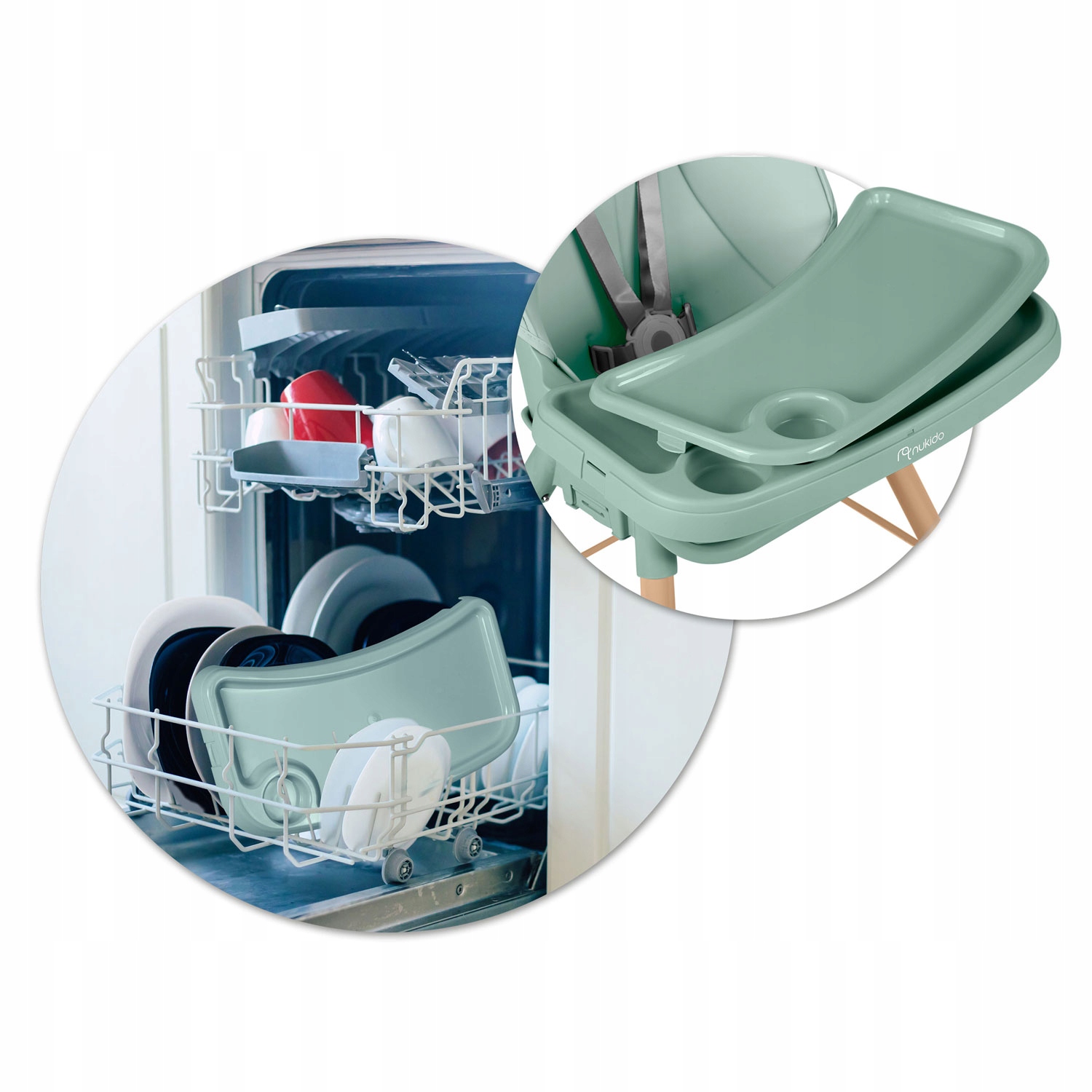 Стульчик позволяет свободно регулировать расстояние подноса от ребенка. Их также можно полностью разобрать в любое время.