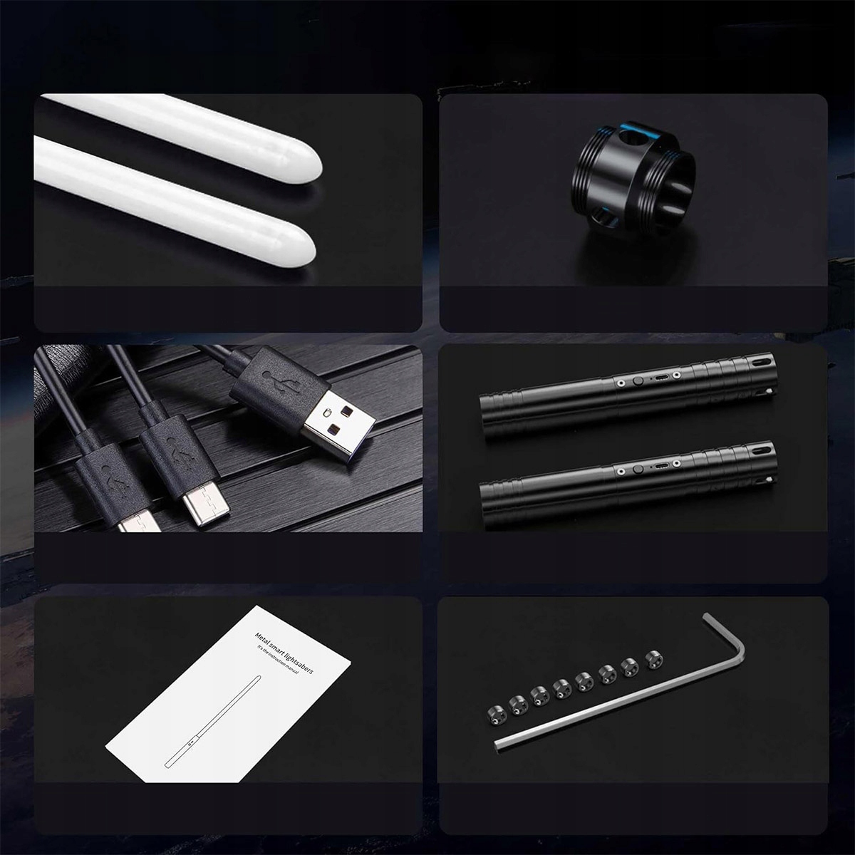Детский лазерный меч, световой меч с зарядкой USB-C для детей, световой меч 2 в 1 RGB, 20 цветов, дуэльный световой меч с 4 режимами, световые мечи с металлической ручкой, лазерный меч для детей и взрослых, набор из 2 световых мечей