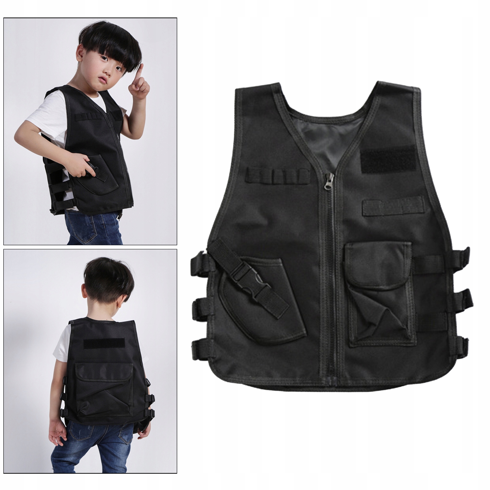 Дитячий тактичний жилет, поліцейський ігровий жилет Combat Equipment Plate, чорний, 50 см
