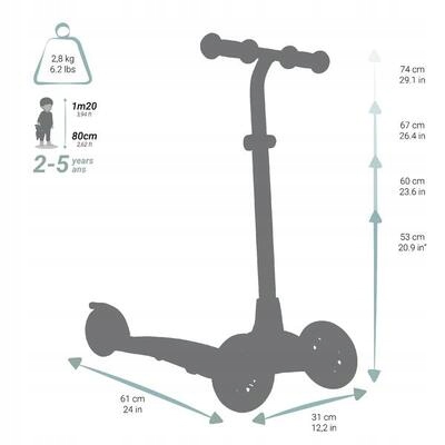 Зажигайте кольца, чтобы было еще веселее! Простой в использовании трехколесный самокат для детей ростом от 80 до 120 см, которые с нетерпением ждут новых впечатлений от катания. Весело, со светящимися колесами и еще проще в освоении благодаря запатентованной системе рулевого управления, платформе и двухкомпонентному тормозу, которые облегчают положение ноги!