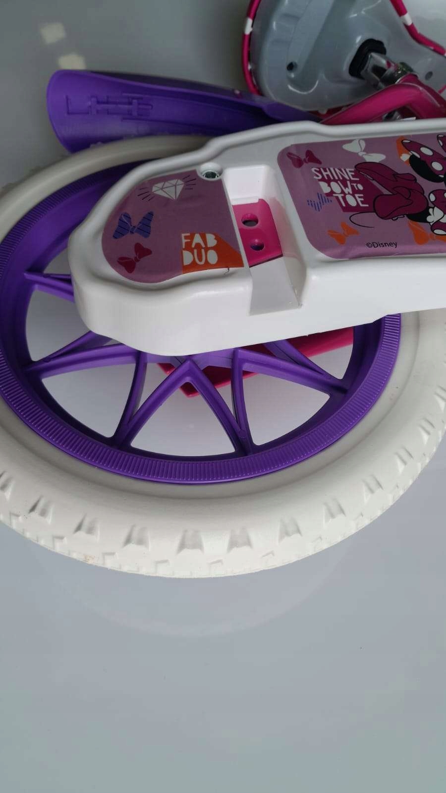 Детский велосипед Disney Minnie, оснащенный 1 тормозом, передней корзиной, задней кукол, крыльями и однопользовательскими стабилизаторами, твердыми, шинами EVA, кругами палки, нейлоновыми подшипниками на рулевом колесе и руководителем, 2 -х корзинах, 2 стабилизаторах с установкой без использования инструментов, крыла, корпуса протектива, куклов. + Наушники Минни в съемочной площадке!