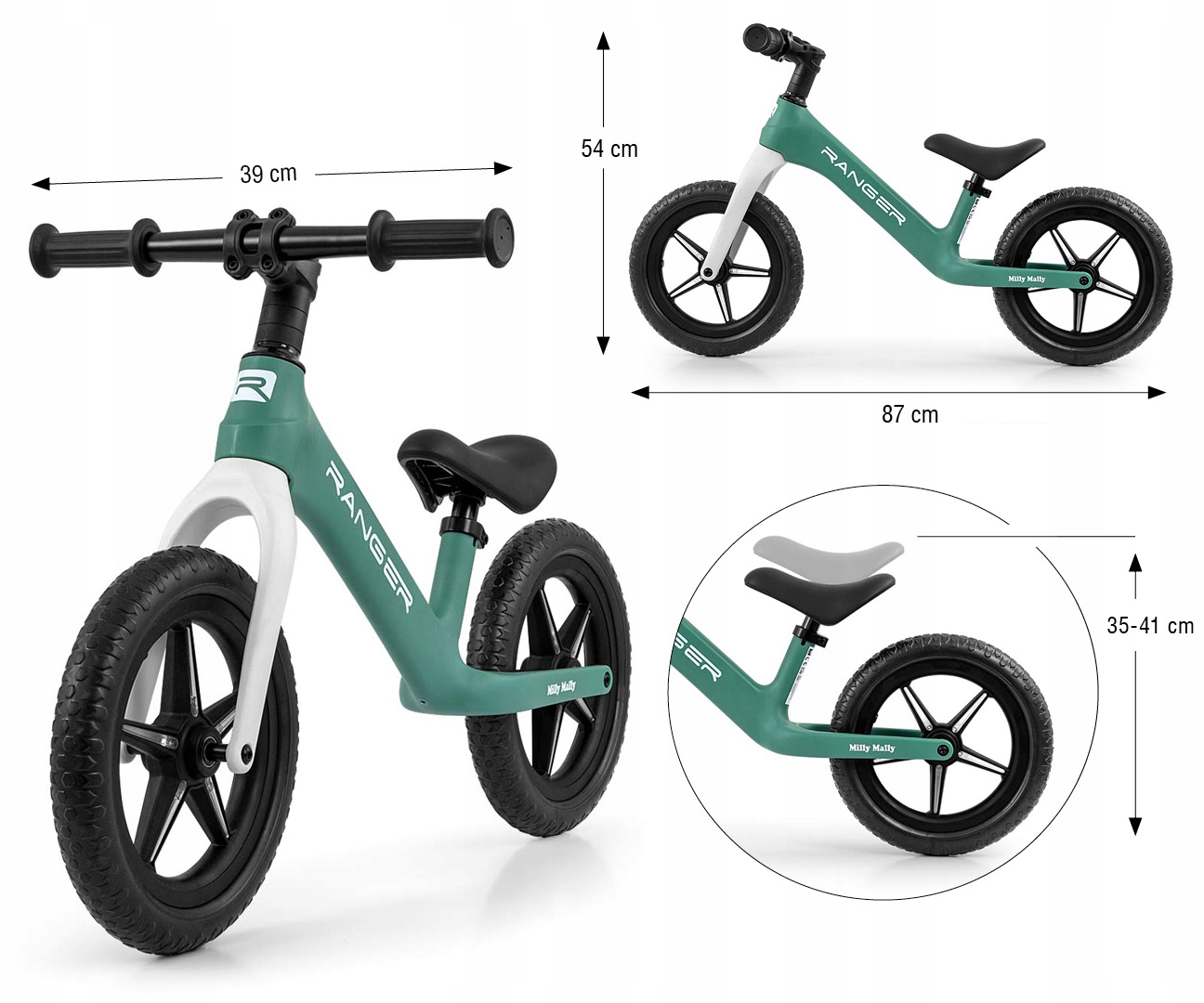 - Регулируемая высота седла (35 - 41 см).