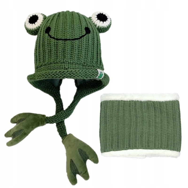 Детский зимний комплект молодежь зеленая шляпа лягушка трубки трубки