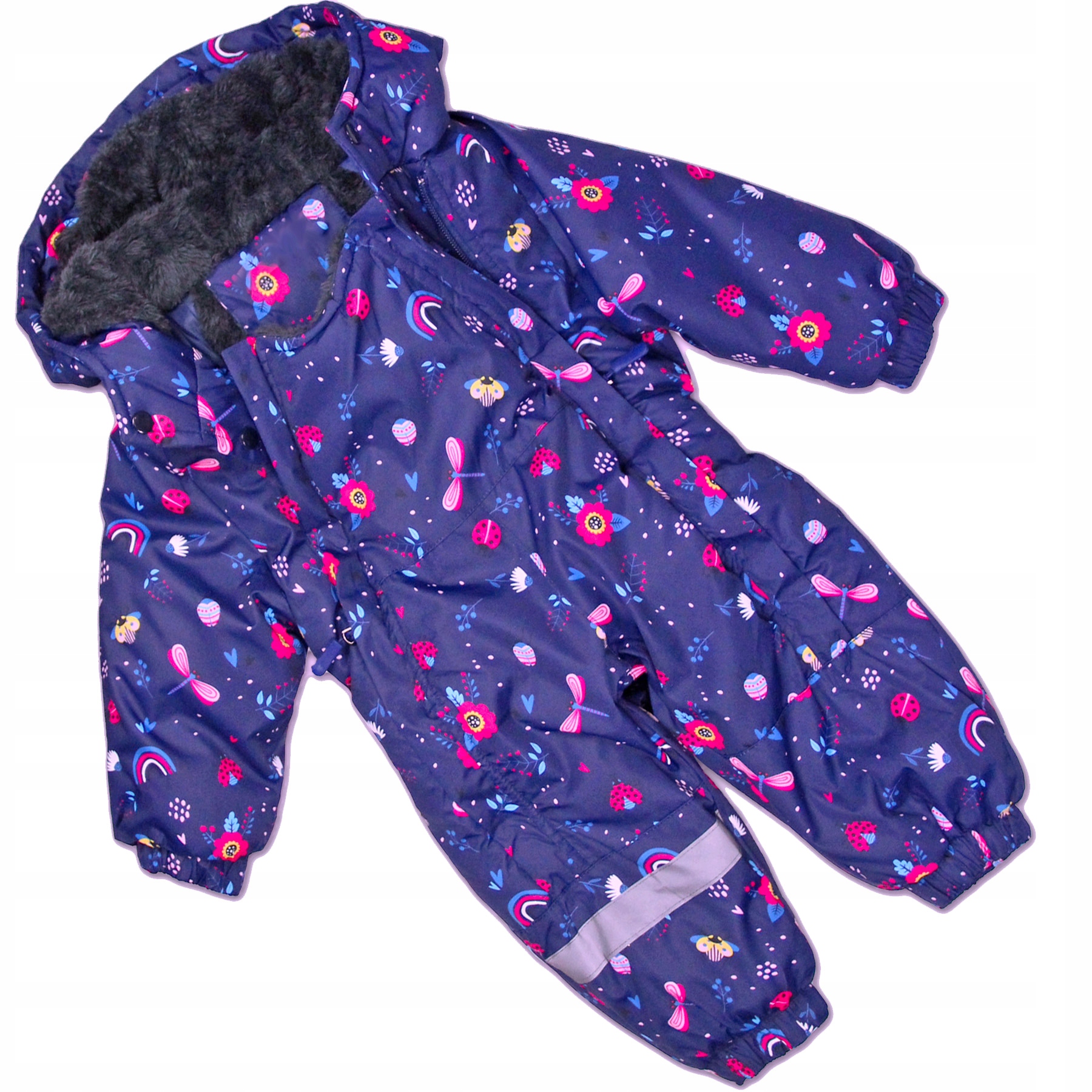 Застегивается на две независимые молнии (удобство при одевании). Эластичная лента на талии. Рукава и штанины отделаны манжетами. На ножке пришит светоотражатель (безопасность для ребенка).