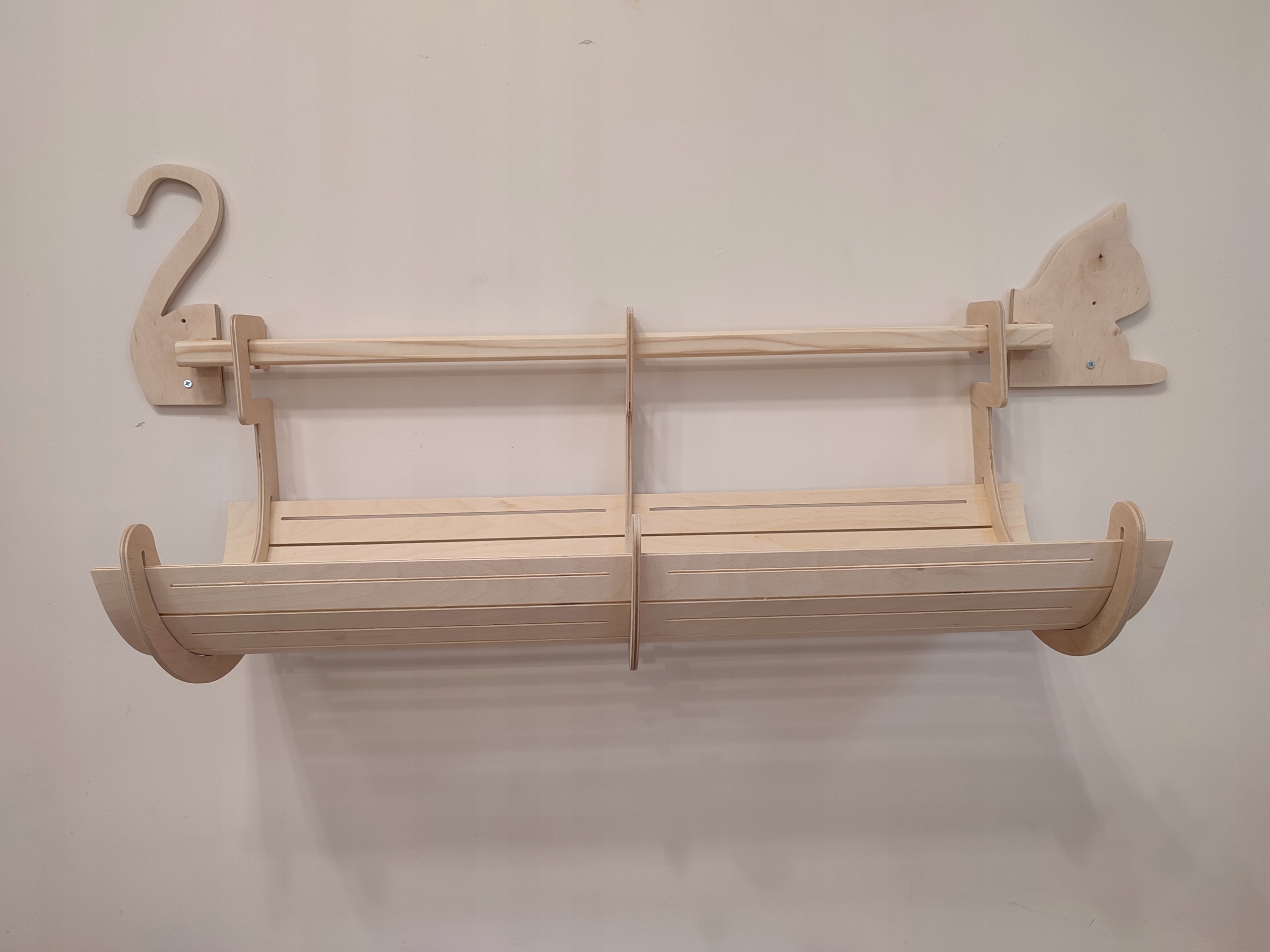 Элементы, крепящиеся непосредственно к стене, напоминают лежащего кота, поэтому не остается сомнений, чье это место!