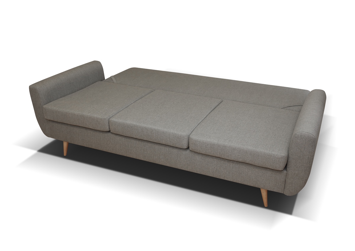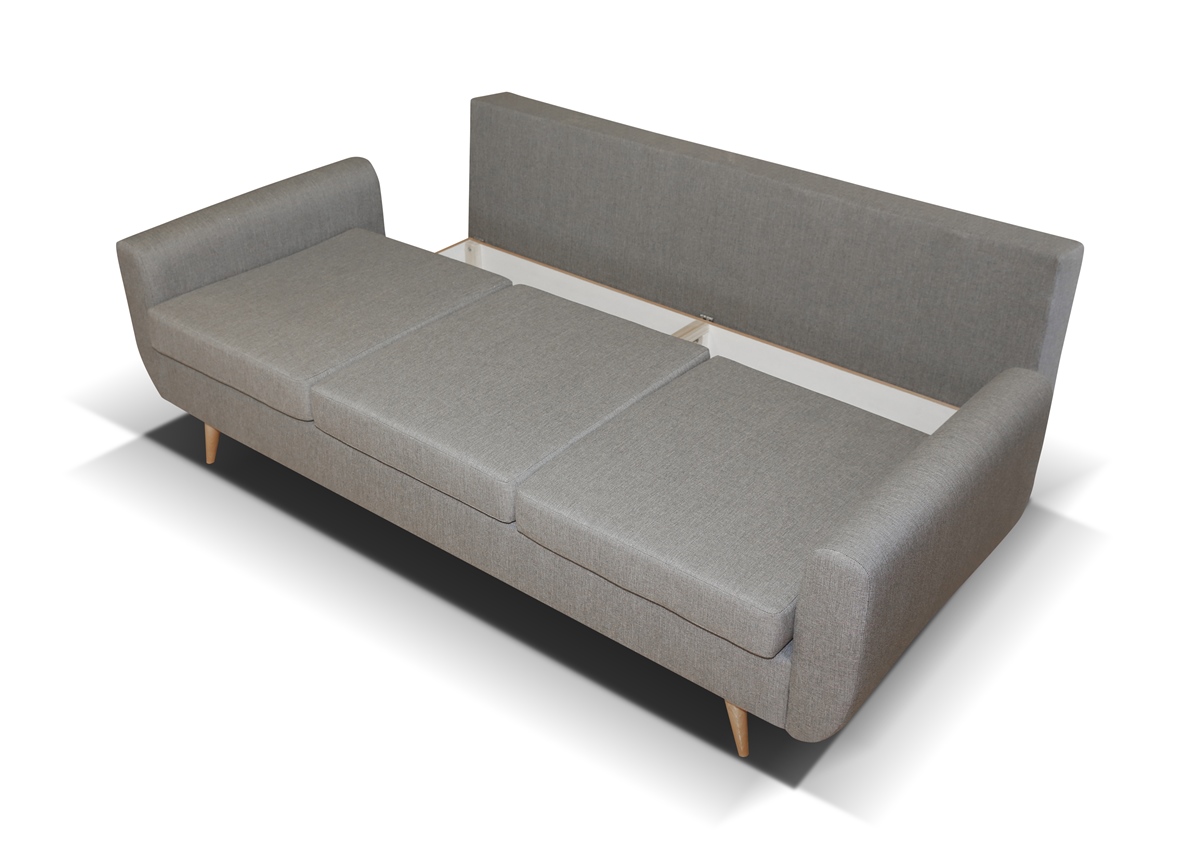 Представленный нами диван можно раскладывать, образуя очень удобную спальную зону размером 200 х 140 см. Внутри имеется контейнер для постельного белья. Диван имеет автоматический механизм открывания.